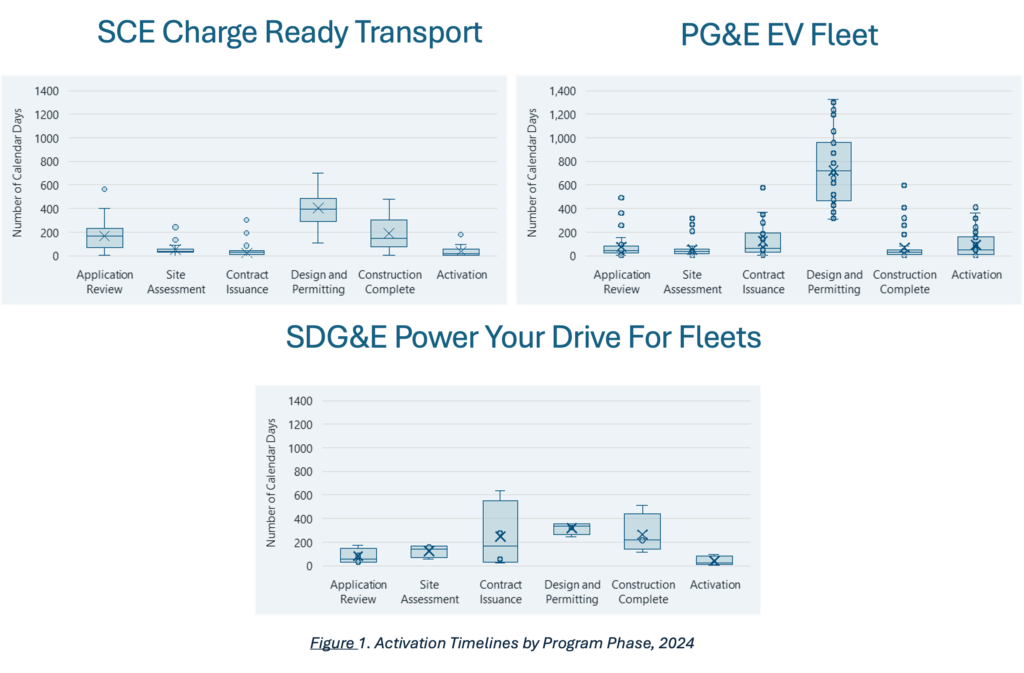 Our latest evaluation report of utility-led charging programs includes over 200 MDHD charging sites, allowing us to examine drivers of site activation timelines. Sites in the evaluation average 16 ports and 750 kW per site. Each site follows a standard development sequence 1) application to participate in utility program, 2) site assessment, 3) contract issuance, 4) design and permitting, 5) construction complete, and 6) activation.